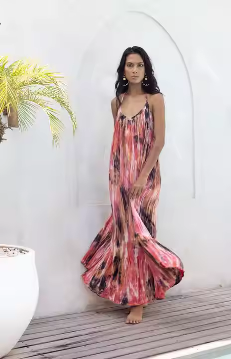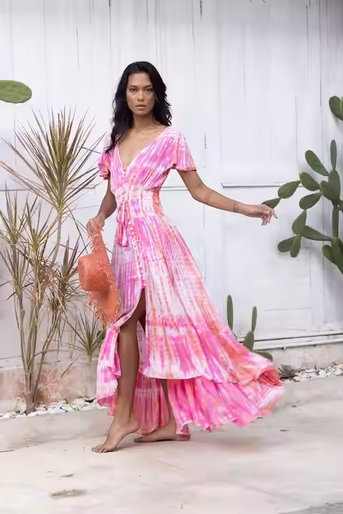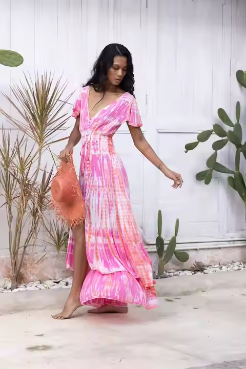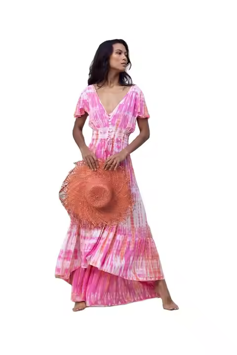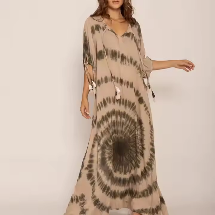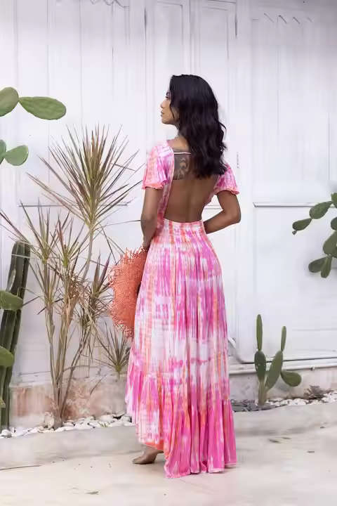 OEM Private Label Tie Dye Maxi Dress with Solid Pattern Fancy Designed Maxi Dress for Sale by Indian Exporters