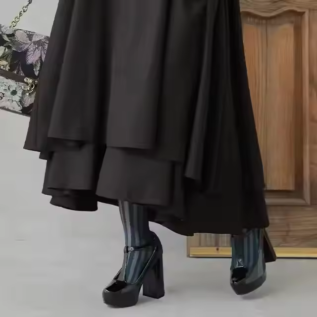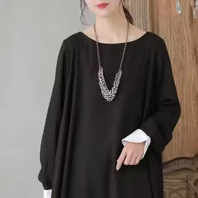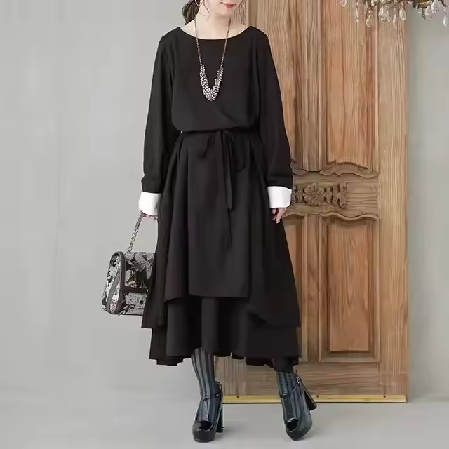 High Grade Women's Plain Winter Pretty Fancy Casual Flared Dress with Long Sleeves