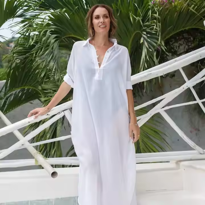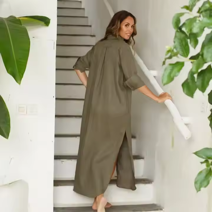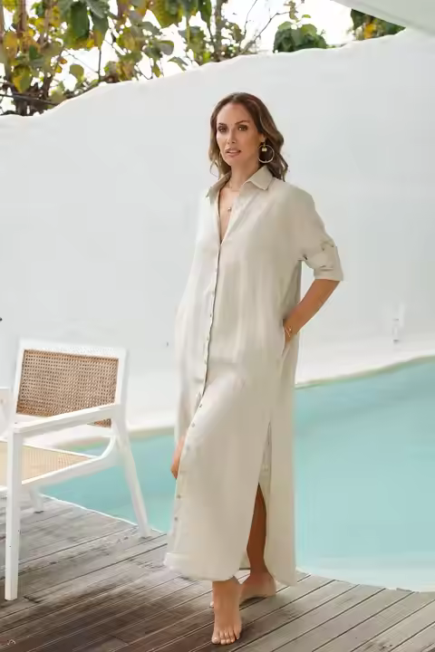 New Casual Solid Color Long Sleeved Cotton Shirt Loose Single-breasted Oversize Long Shirt Dress for Women