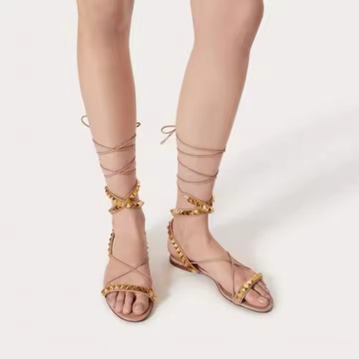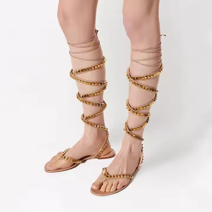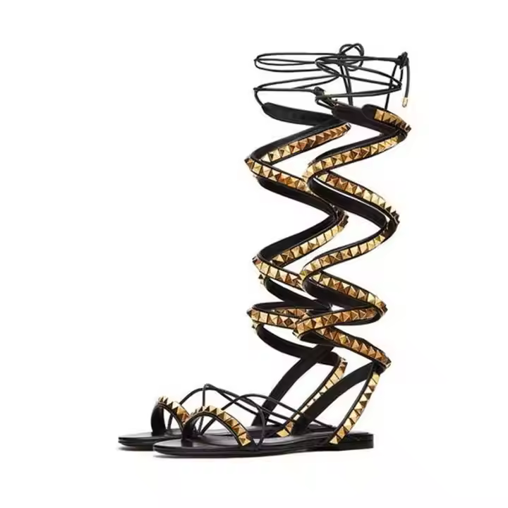 Custom Large Size 34-45 Metal Rivets Ladies' Roman Style Summer Wrap Flip PS Flat Sandals PU Rubber Spring Shoes