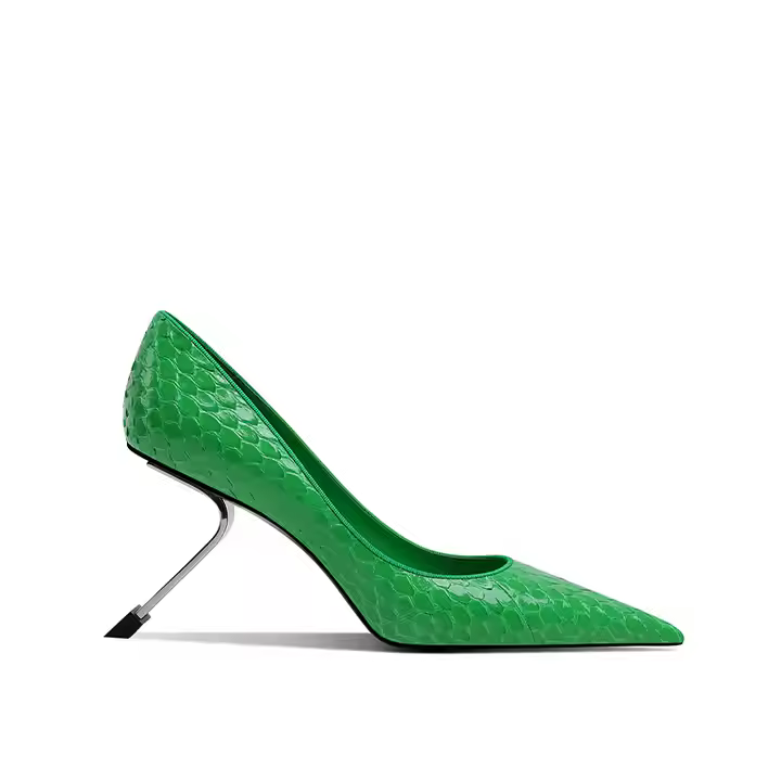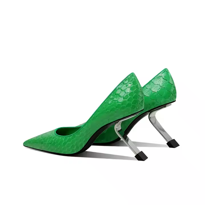 Custom Women PU Strange Style Stiletto Heels Metal Decoration Personalized Geometric Pointed Toe Fashion Wedding Snakeskin Pumps