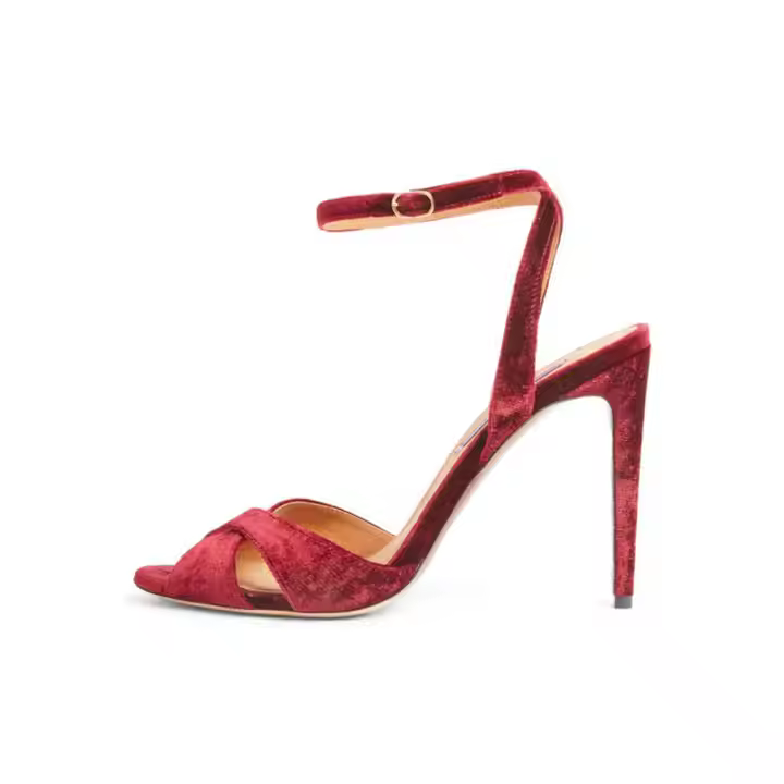 Custom Large Size 34-45 Summer Open Toe Women High Heel Ladies Ankle Metal Buckle Straps Suede Sandals