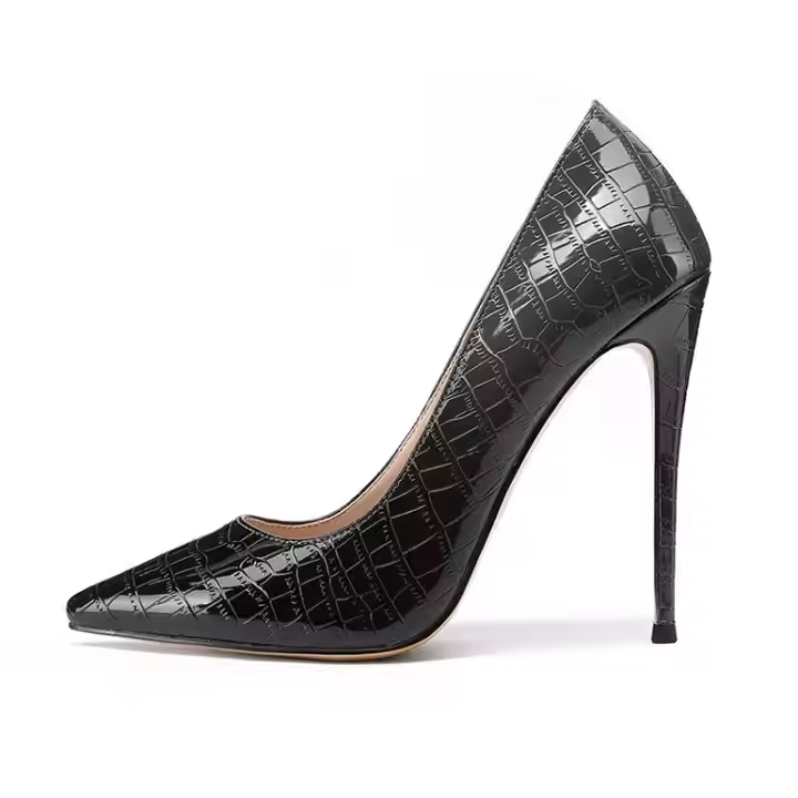 Custom 12CM Shiny Slip on Pu Upper Pointed Toe Women High Heel Snakeskin Pumps